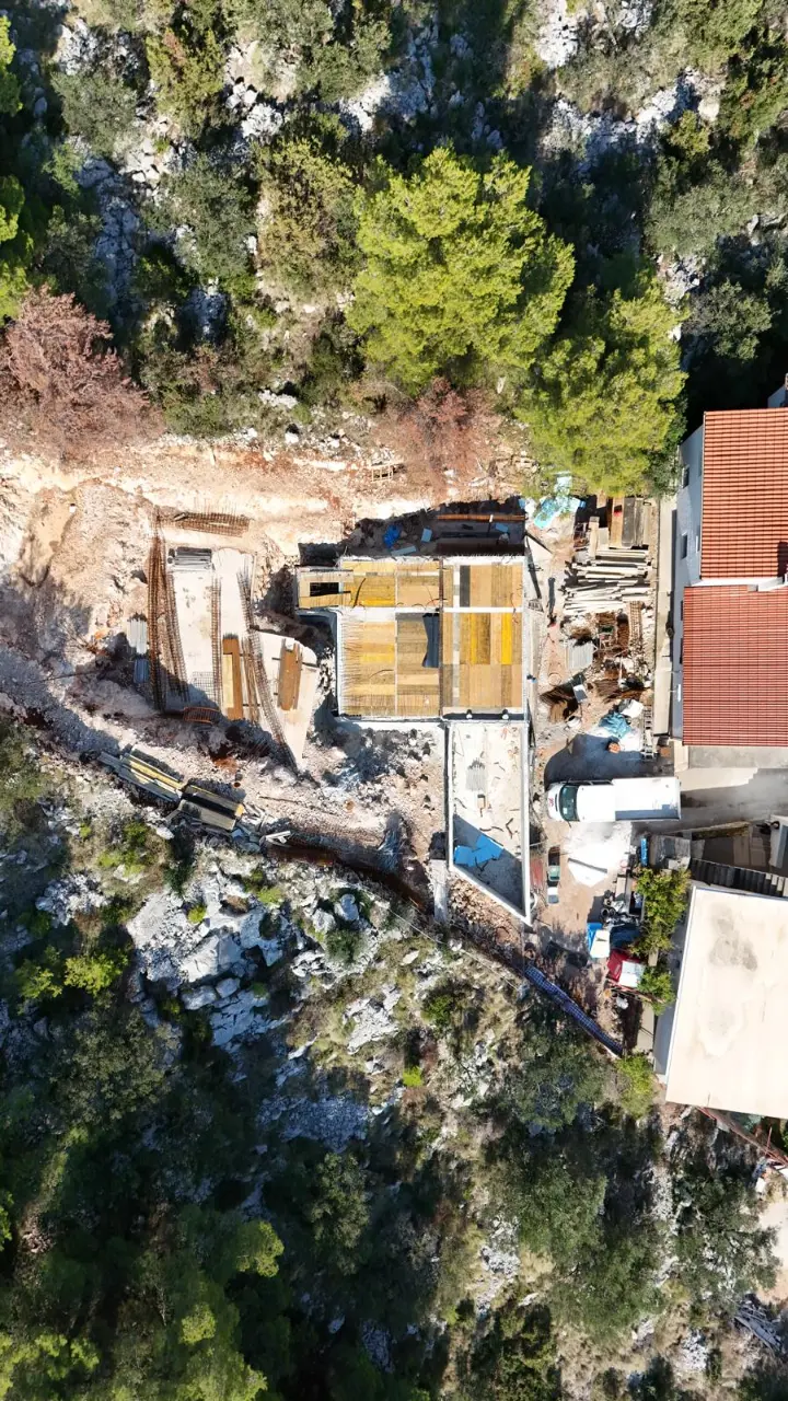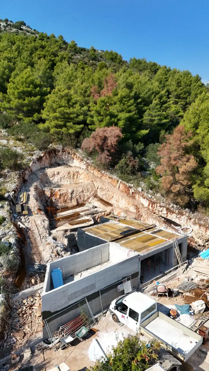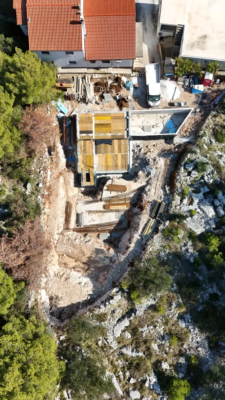 Work is steadily progressing on our Modern Villa in Poljica, a project that combines minimalist architecture with the serene Mediterranean landscape. The structure has now taken full shape, and the harmony between clean lines, natural materials, and the surrounding greenery is becoming more and more visible.