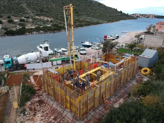 The construction, fully executed by Kvalitetna Gradnja, took approximately one year to complete. Our team managed every stage of the process, from preparatory earthworks and foundation