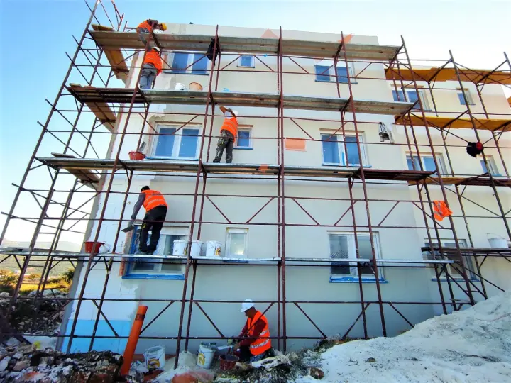 construction to the monolithic concrete structure, roofing, and external insulation with plastering and painting.