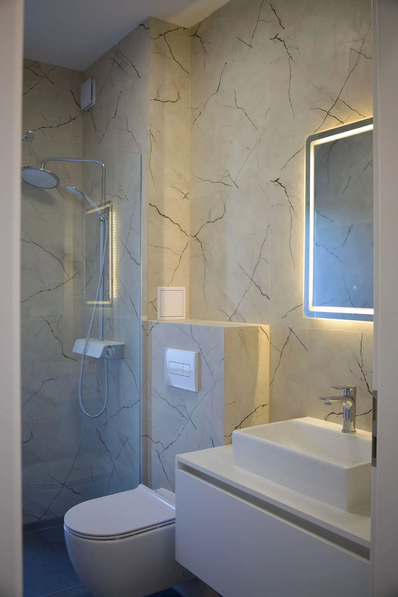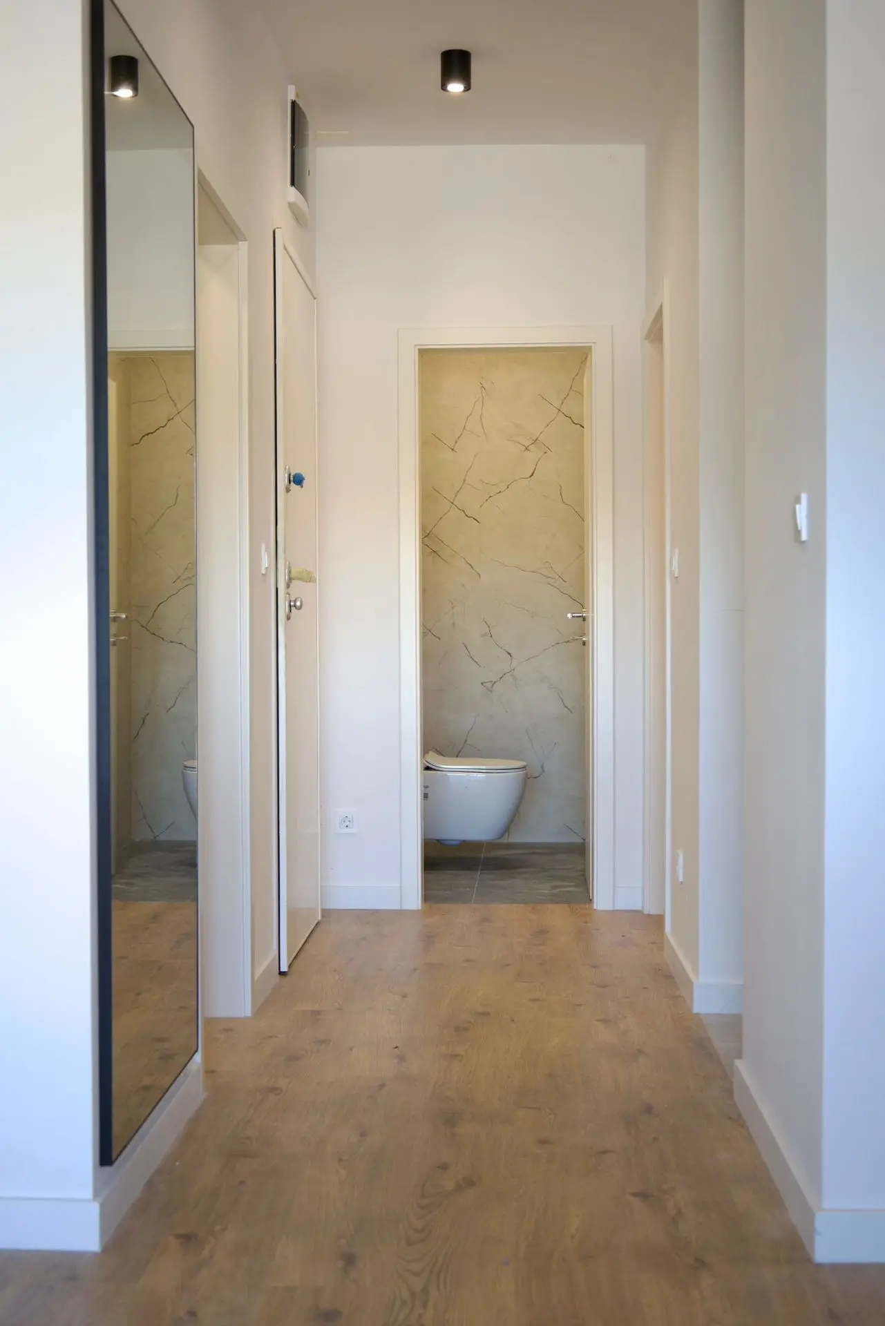 Experience the essence of modern Mediterranean living in this elegant, newly built three-bedroom apartment with a private garden, located in the picturesque bay of Marina, between Trogir and Split.